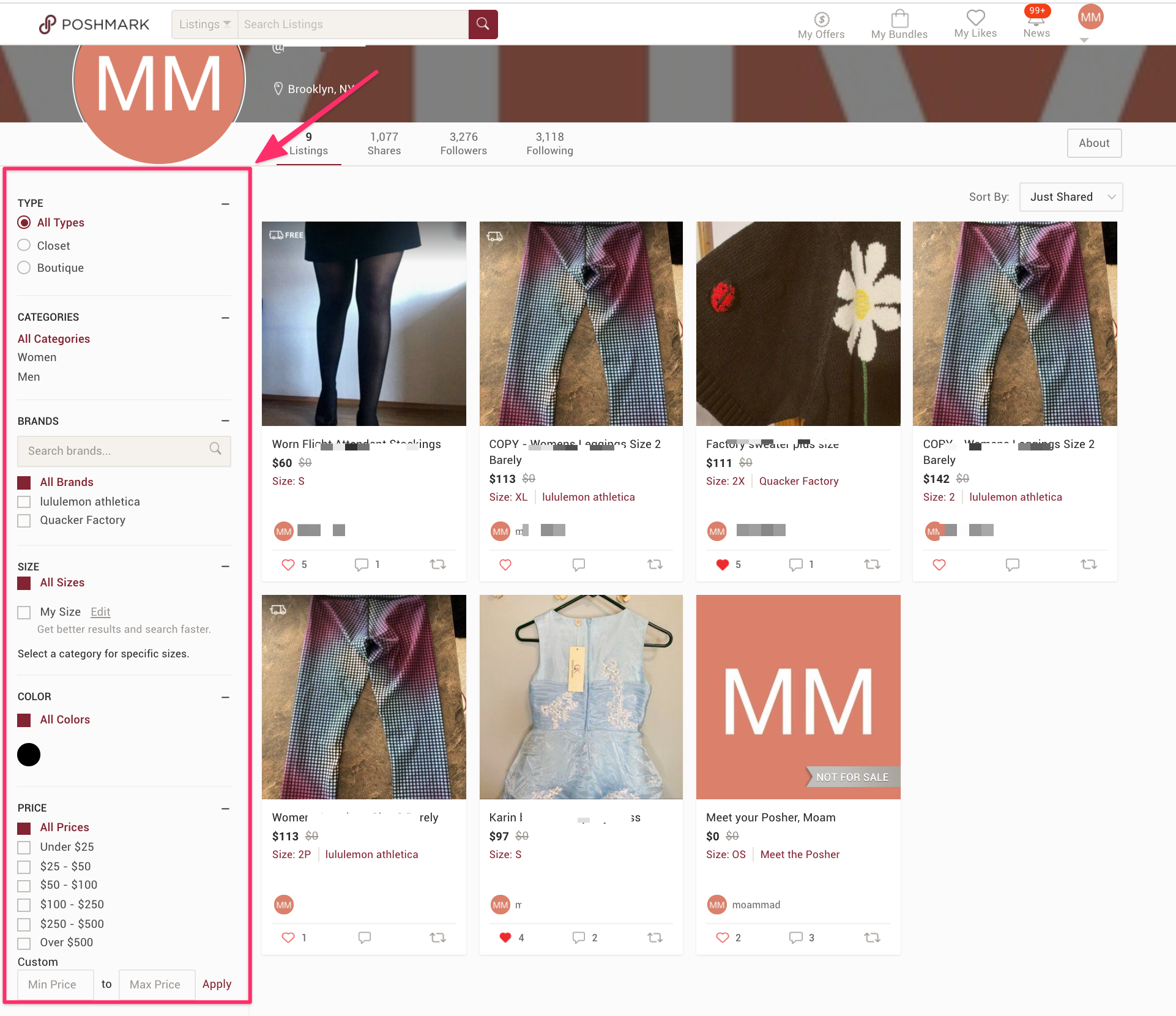 Use this method to filter your closet by Poshmark filters and share only a specific Category, Brand, or listings in a particular price range.