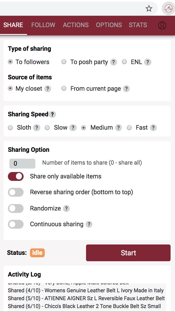1. **Popup window** - click on PosherVA icon on browser tab.