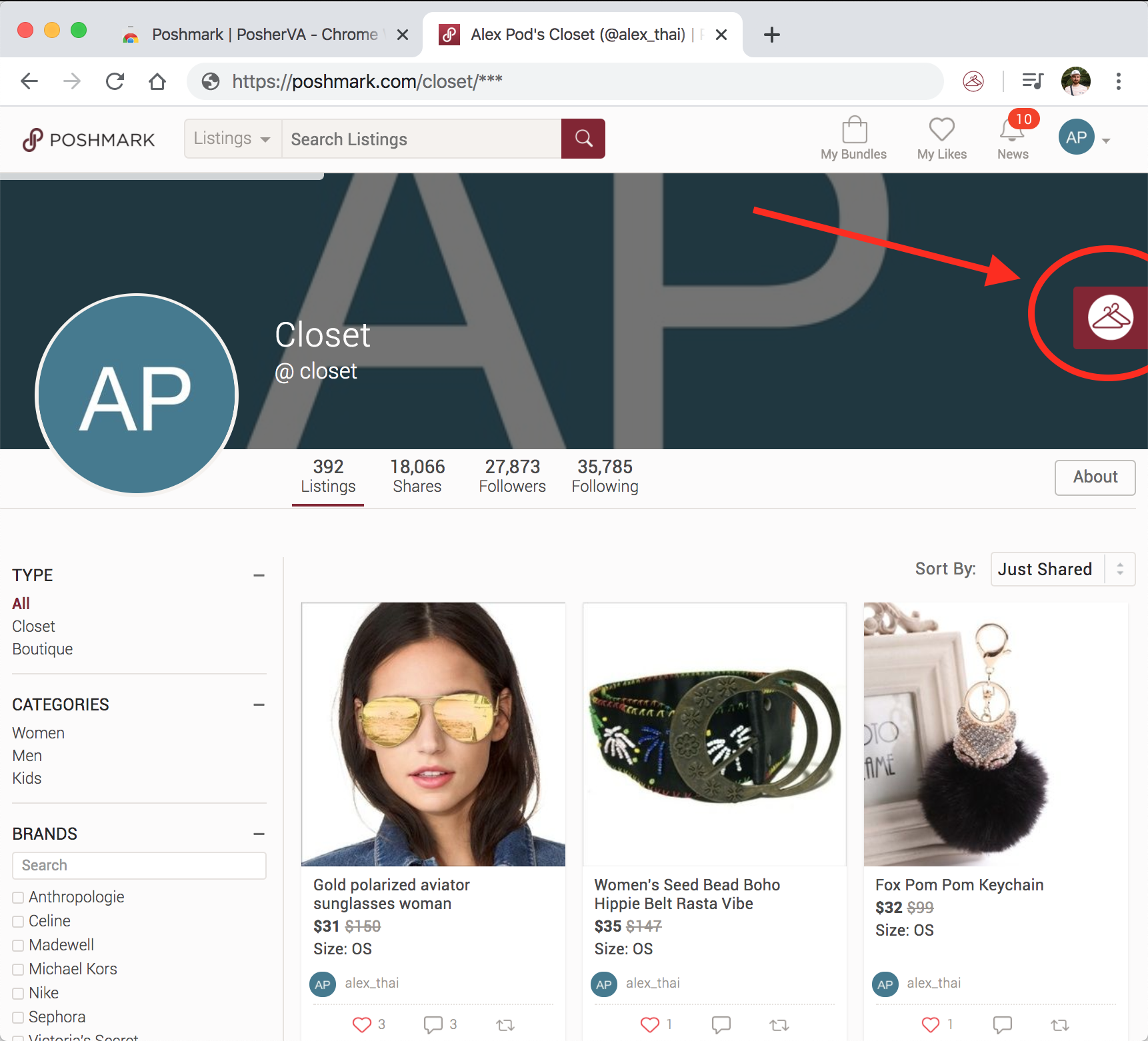 2. **Poshmark context menu**: context button on specific and relevant pages on [Poshmark.com](http://poshmark.com/) while you navigate the site.